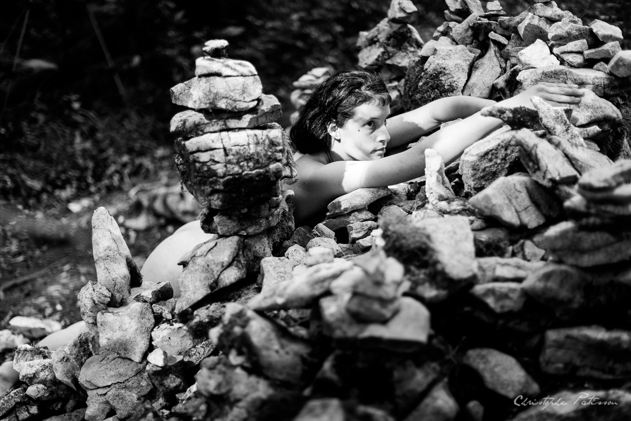 Parfois la nature semble vouloir absorber l’humain, tantôt l’humain domine la nature, avec son lot de préjudices irréversibles. Durant cette séance de nu, c’est les deux à la fois ; mais que la domination vienne de la nature ou de l’humain, en l’occurrence Cherihane, elle n’est emprunte ni de violence et le caractère irréversible en est totalement absent.