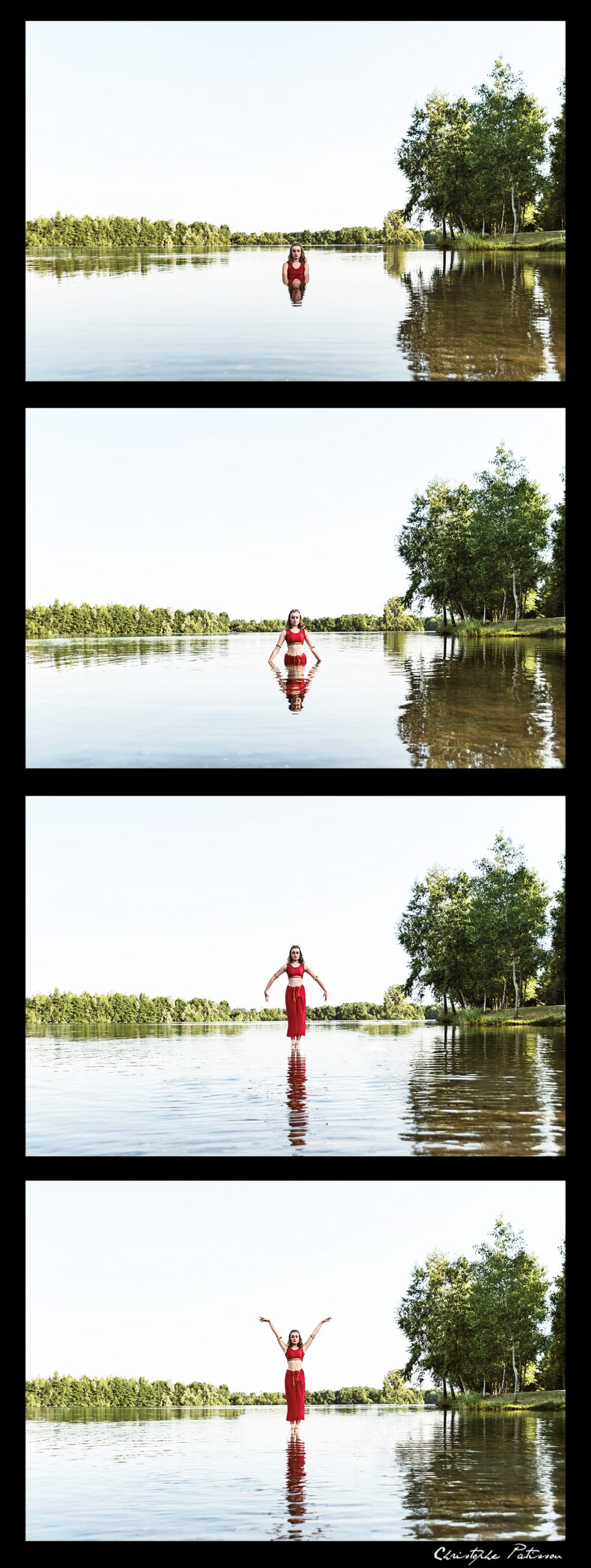 Héléna est danseuse depuis de nombreuses années. Nous avons collaboré il y a plus de deux ans déjà et la « Naïade de la Saline » est un projet qui nous a rassemblé autour d’un thème moins évident. Pour la partie technique, nous fûmes aidés par Fanny et Marion. Il fallait évidemment éviter qu’Héléna ne tombe à l’eau dès le début de la séance !