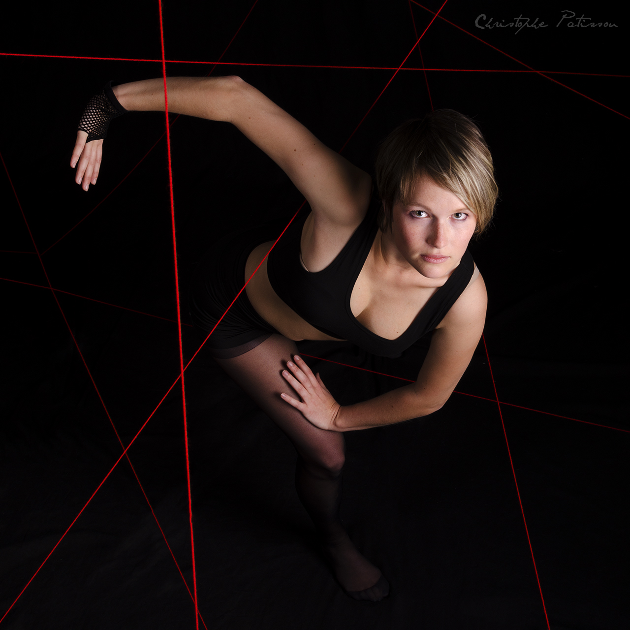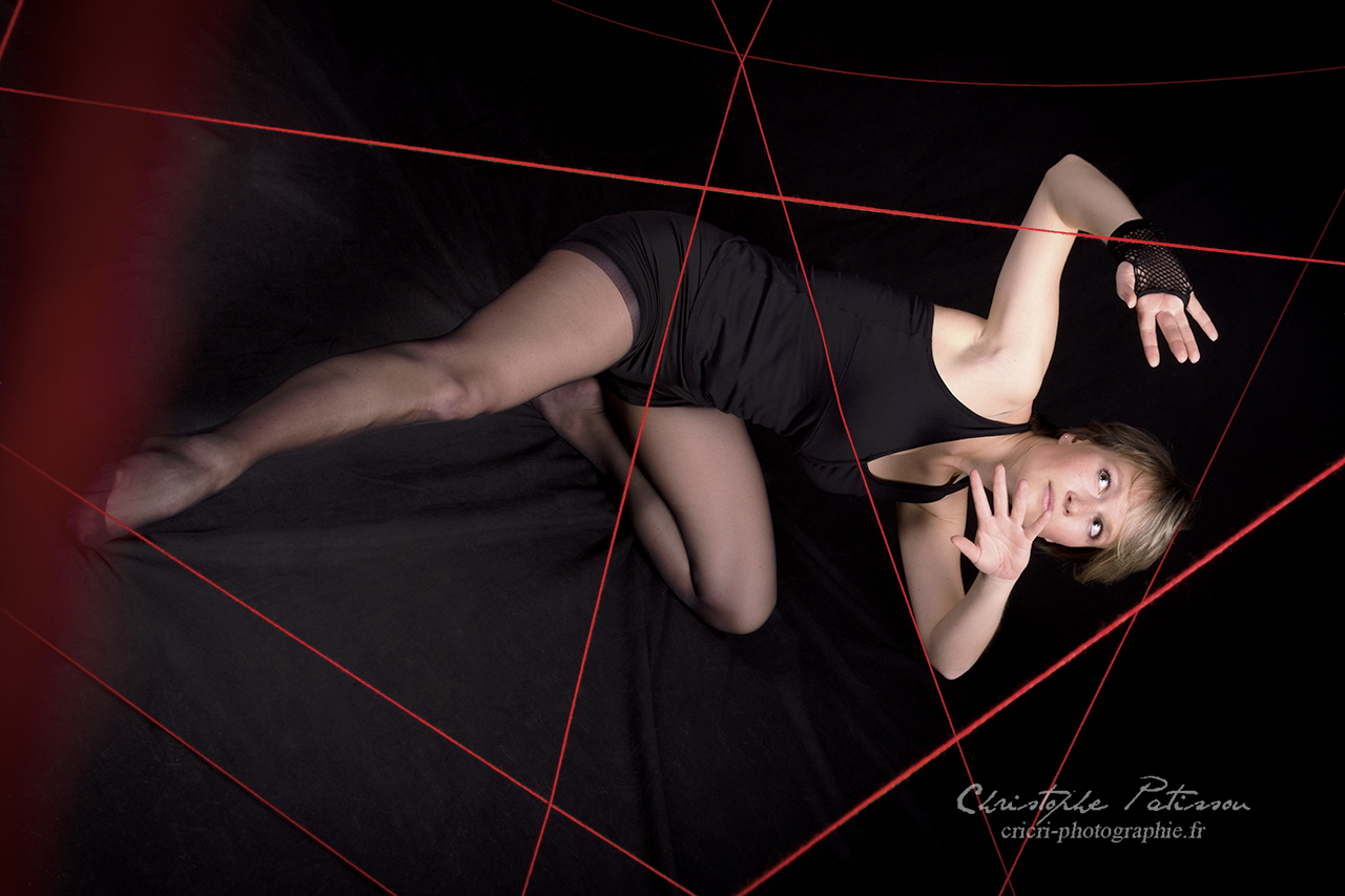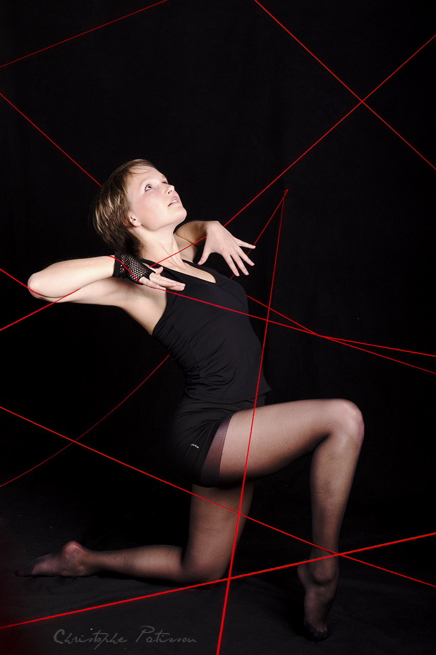 Quand je vois ces photos je ne peux m’empêcher a la scène du laser d’ocean twelve. On voit Vincent Cassel virevolter avec magie et aisance entre des laser mobiles sur une musique enivrante. Merci pour ce beau mélange de rouge et noir!