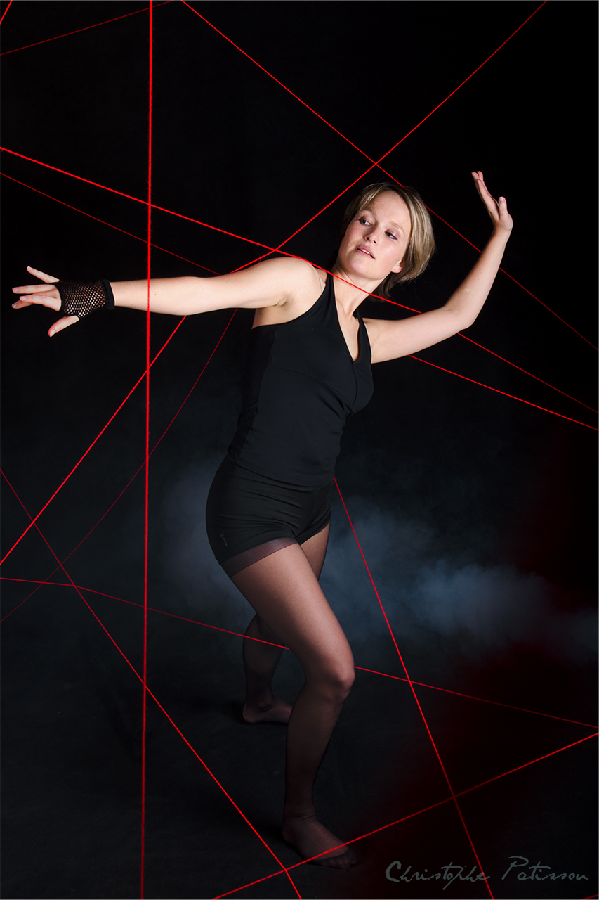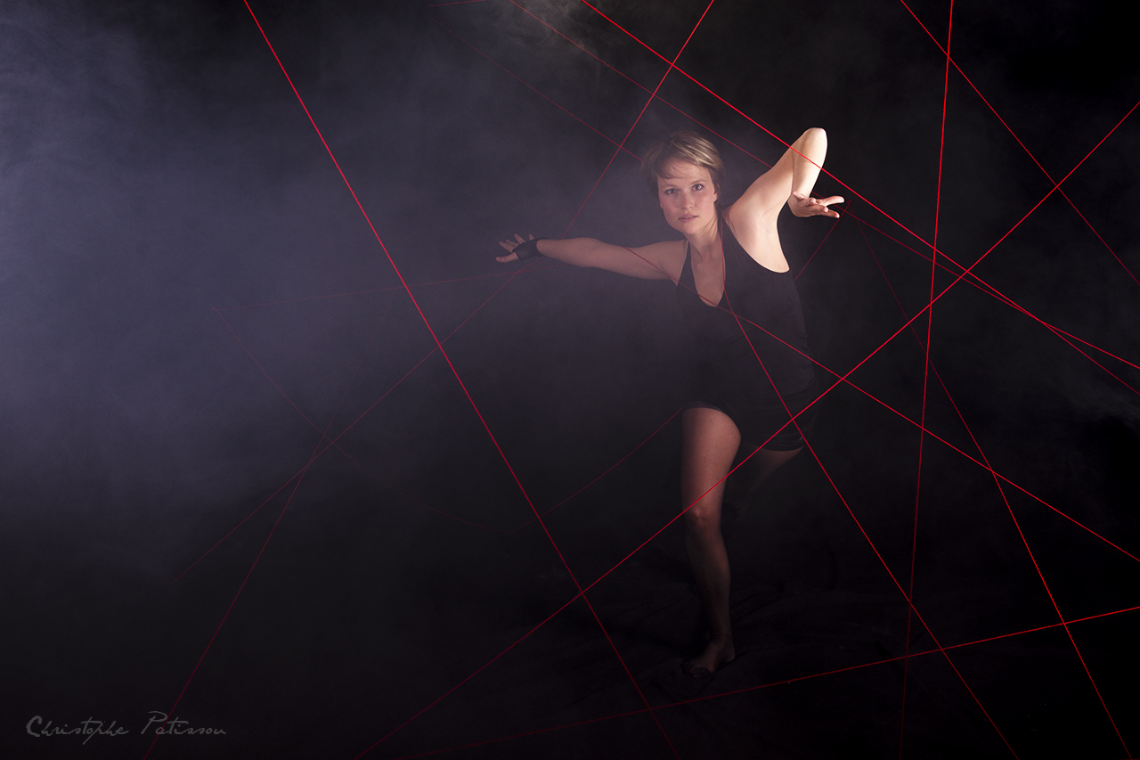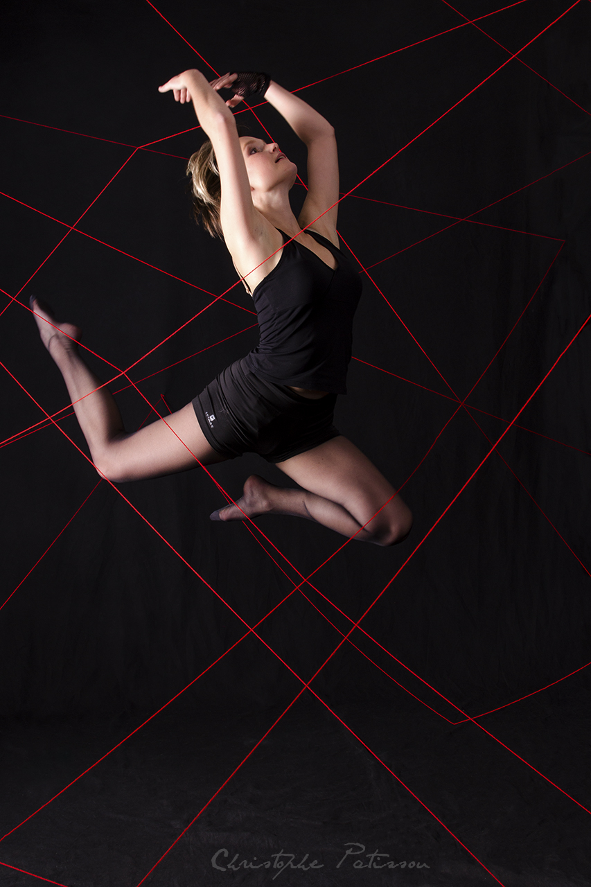 Quand je vois ces photos je ne peux m’empêcher a la scène du laser d’ocean twelve. On voit Vincent Cassel virevolter avec magie et aisance entre des laser mobiles sur une musique enivrante. Merci pour ce beau mélange de rouge et noir!