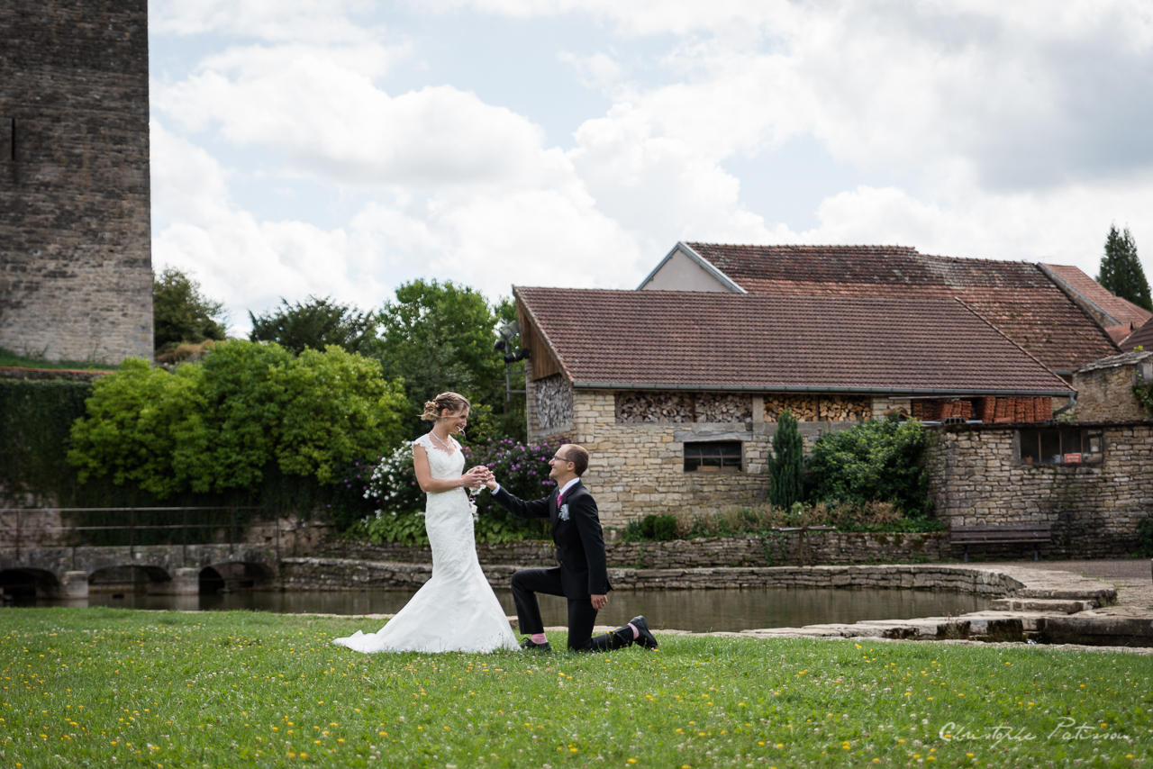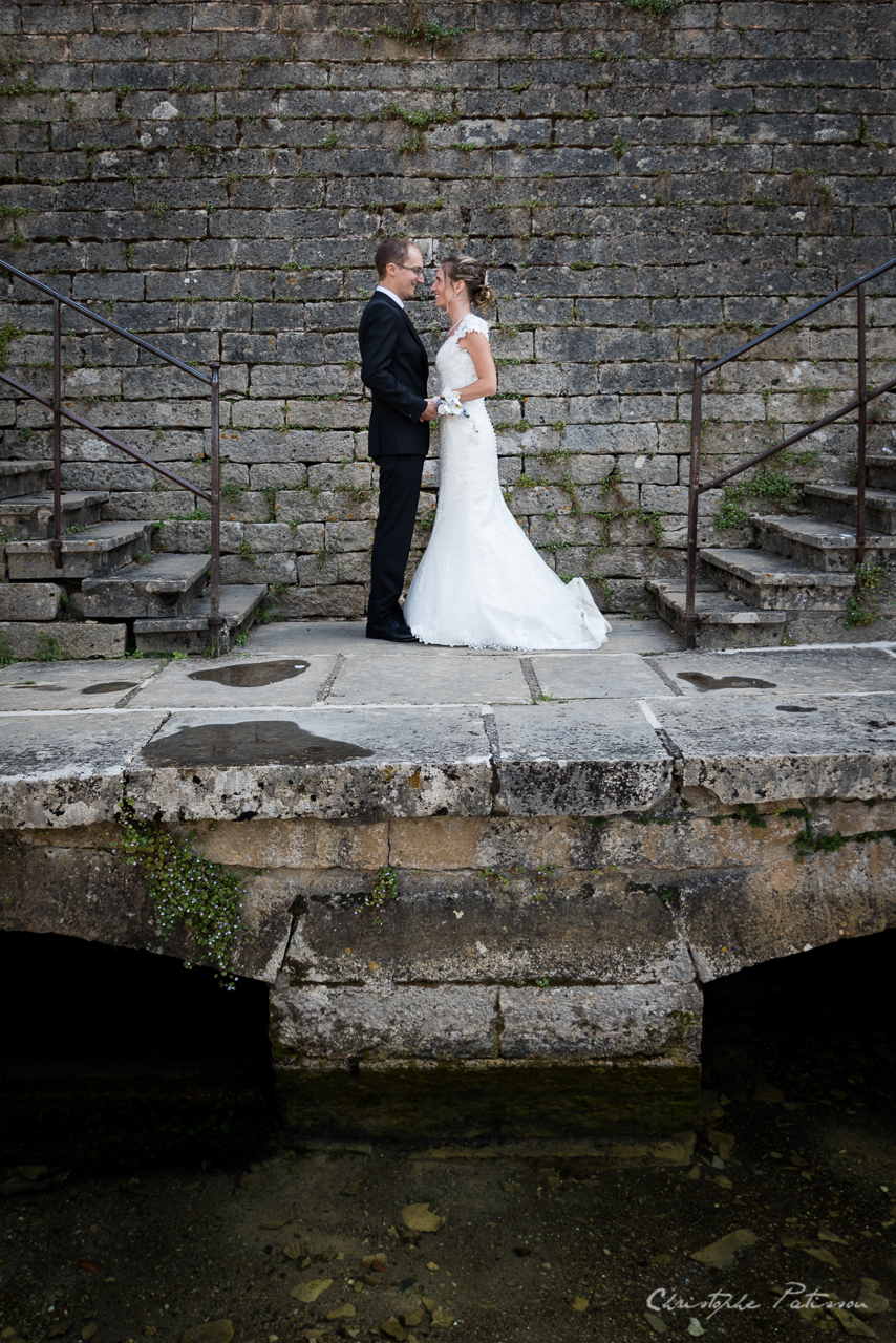 J’ai connu Jennifer et Christophe lors du mariage de Fanny et d’Aurélien en 2016. Je pense avoir fait bonne impression car quelques mois plus tard j’ai été contacté par Jennifer pour leur mariage en Haute-Saône.La question s’était posée du lieu de la séance couple. Nous cherchions un lieu qui avait du sens, qui soit esthétique et qui puisse faire également l’affaire en cas de météo capricieuse. Fondremand m’a donc été proposé par les futurs mariés. Je ne connaissais pas ce petit village Haute-Saônois teinté d’un esprit médiéval aux accents romains. Je ne fus pas déçu et la météo a été clémente au-delà de nos espérances. Ce n’était pas forcément ce qu’il y a de plus évident pour la photographie. Mais un professionnel doit faire feu de tout bois, en tout cas, faire face à toutes les situations météorologiques si celles-ci ne sont pas apocalyptiques ! Temps de midi, soleil d’août, quelques nuages passagers, reflets de l’eau et contre-jour ont été les conditions de la séance…