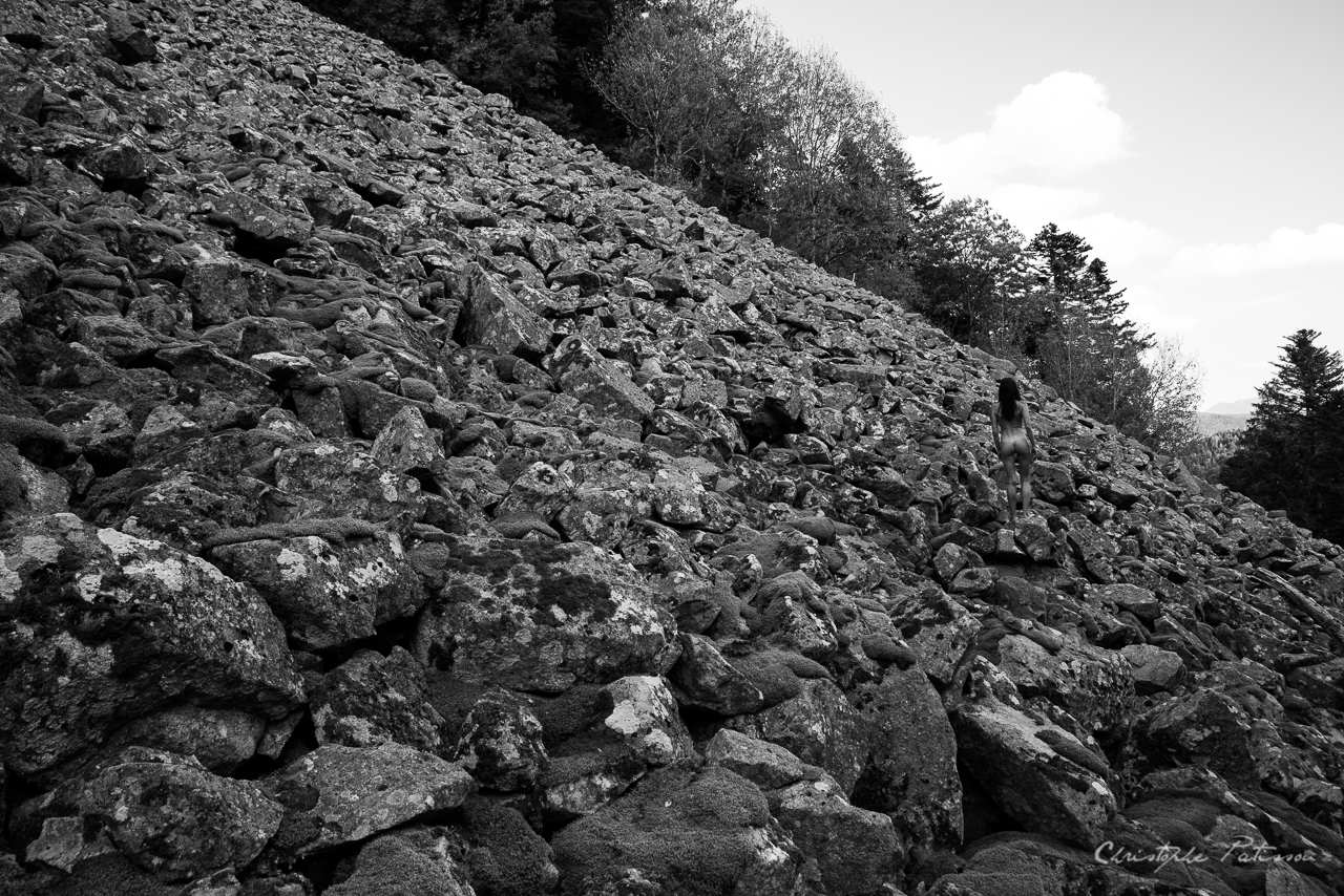 De toute évidence, Valérie n’a pas eu froid aux yeux : l’inclinaison de l’éboulis rocheux, découvert dans les Vosges, aurait rebuté plus d’un modèle.
