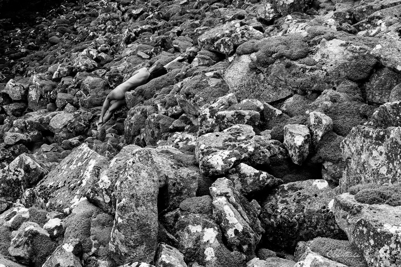 Le thème est simple, l’humain dans la nature. Le nu s’imposait. Dominer ou être dominé, jouer avec son environnement, se sentir faible, petit, dépassé ou ridicule, ou au contraire partir l’assaut, observer son décors, se reposer, aller de l’avant, se battre, méditer et se replier sur soi, telles sont quelques images de cette série que peuvent refléter certaines situations de notre propre vie…
