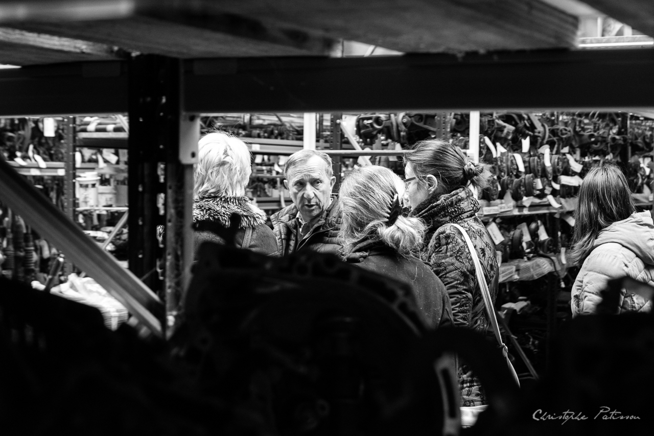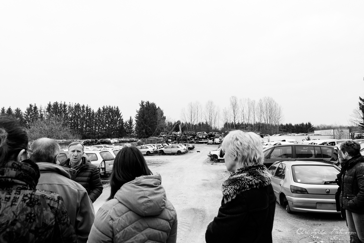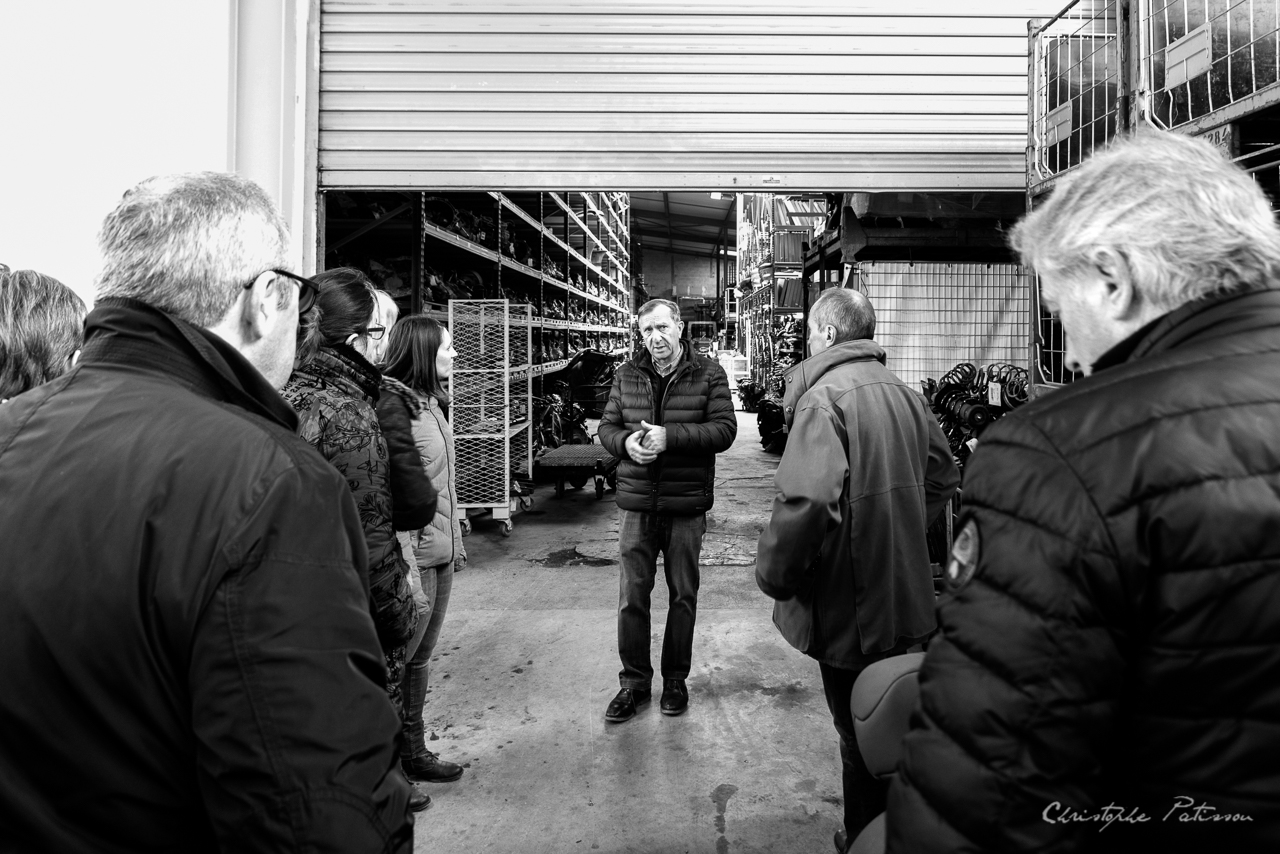 La visite a débuté sur une présentation historique de l’activité, puis elle a suivi naturellement le parcours d’une voiture en fin de vie : sa dépollution, son démantèlement, la récupération, le tri et la revalorisation des éléments économiquement utiles : pare-chocs, pneus et gentes, tableaux de bord, rétroviseurs, auto-radio, etc.